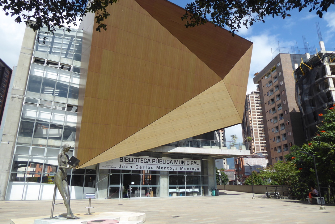 I was so tickled to find the Sabaneta Library on our first day out. It has an unusual shaped roof and a sculpture of a naked lady reading a book. Is this the suggested Colombian reading style?