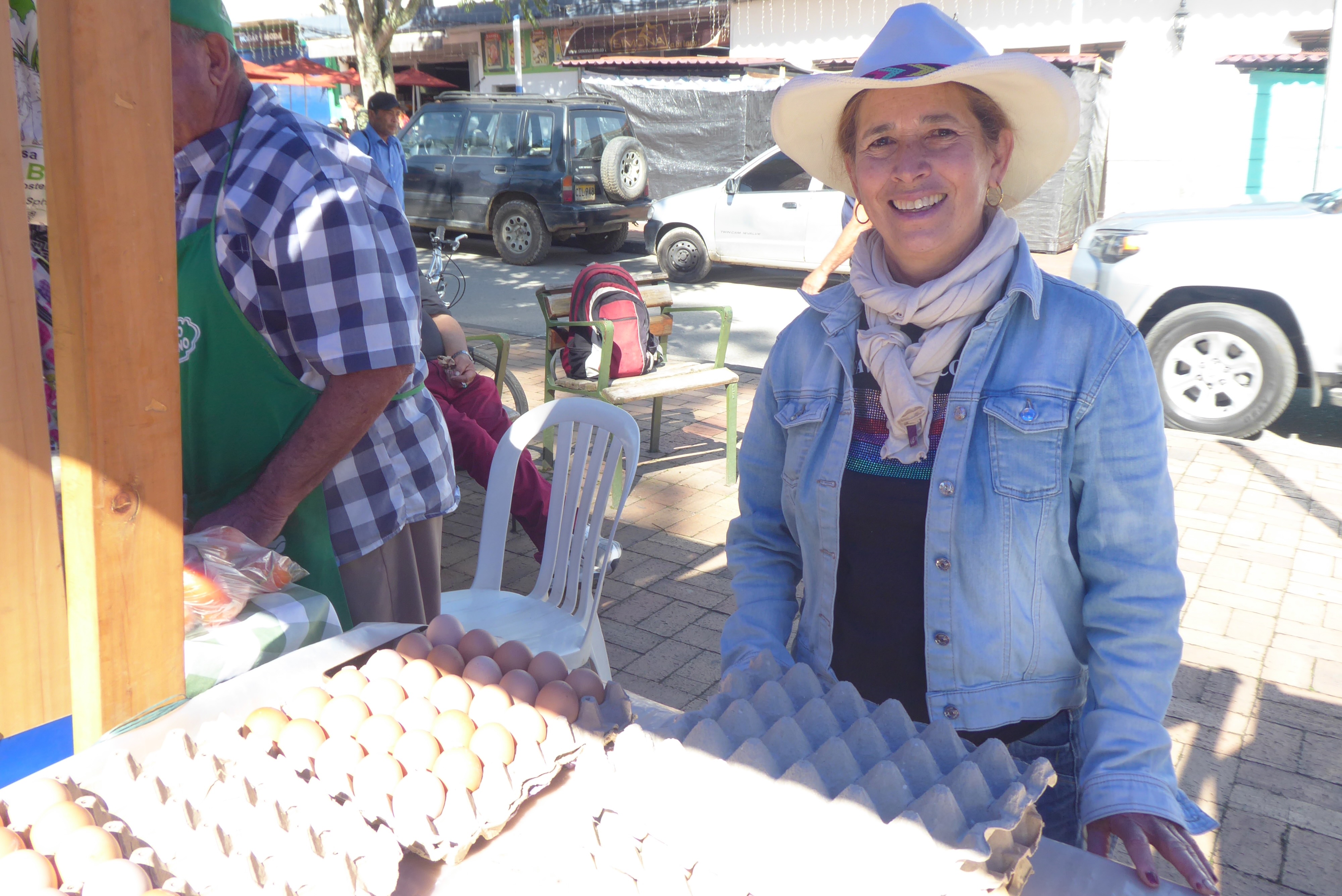 We were delighted to see a nice farmer's market on Saturday in Carmen de Viboral. This lady sold eggs and goat cheese products. She was out of cheese today but said that she was switching from goat to sheep for cheese production. She said goats are too ornery. The sheep are gentler.