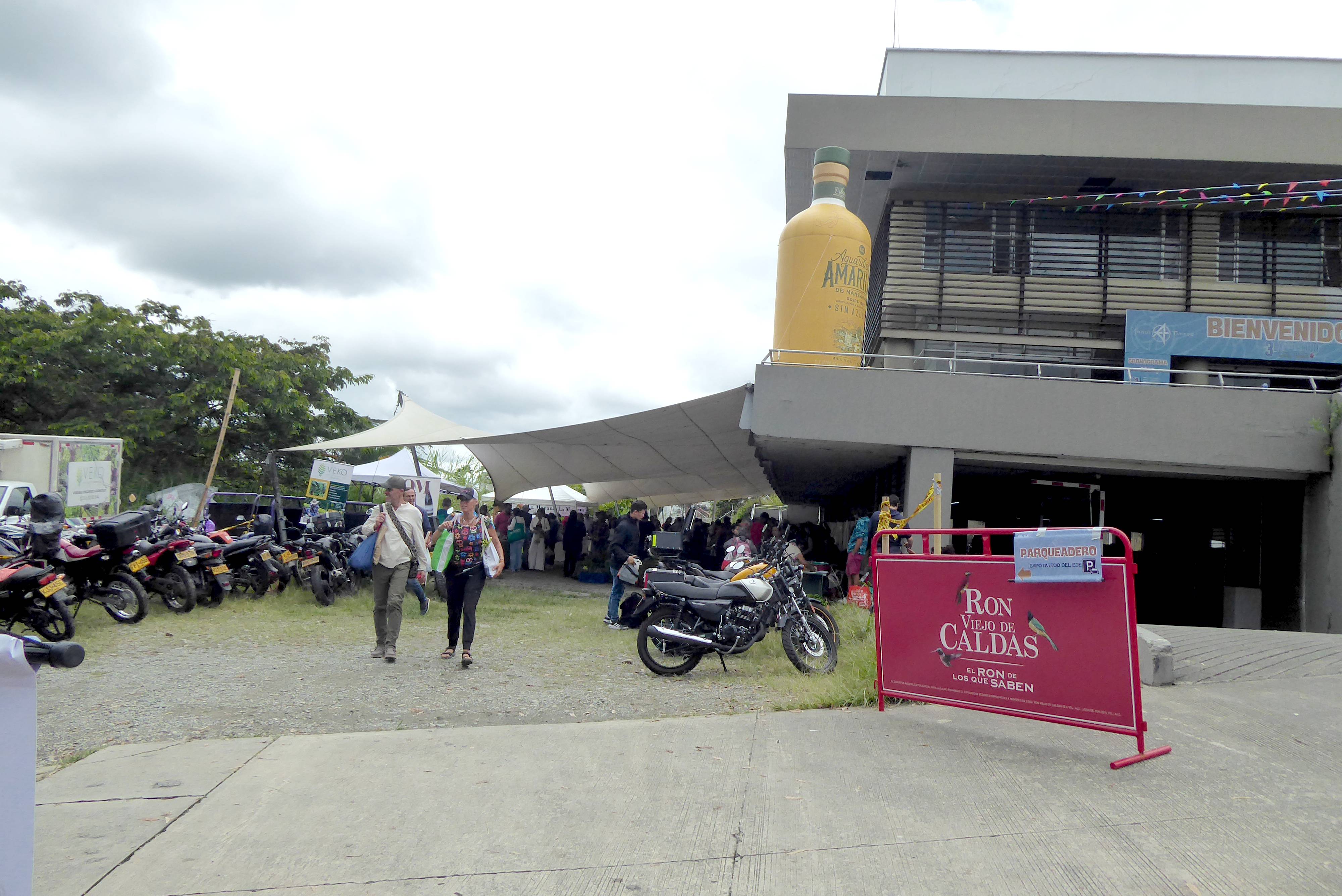 See that big yellow bottle? That is the Colombian Aguardiente brew that they thrive on. I was dismayed to see that the liquor people got to use the nice expo center and the organic food market has to make do with a tarp stretched out over a field even when it is raining. That speaks to some societal values which do not match ours.