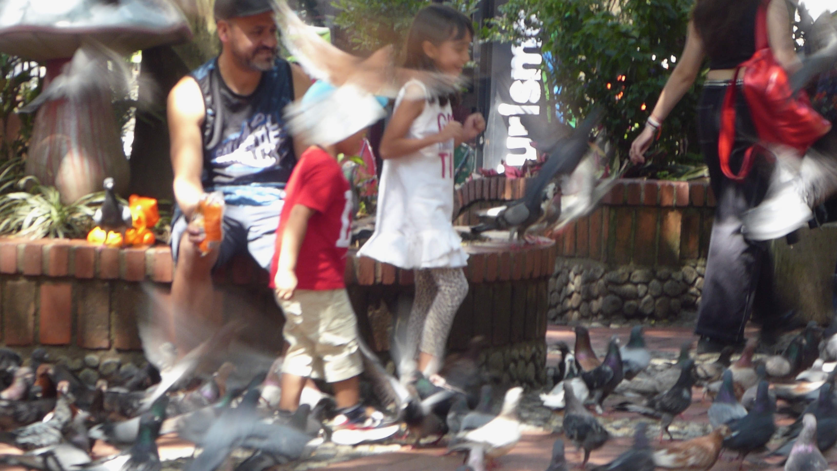 Pigeons and kids in the park are always fun to watch.