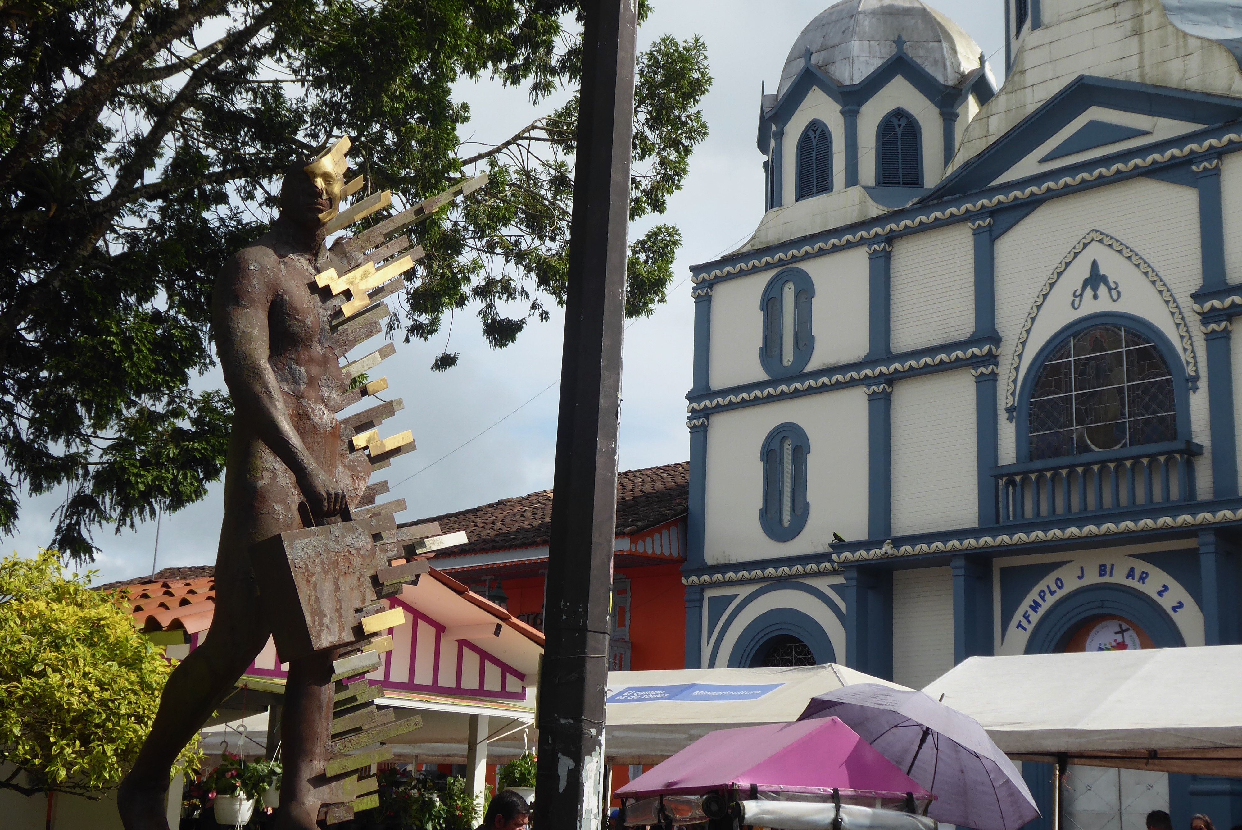 This was an interesting sculpture in the park in Filandia. It is the work of the sculptor Juan Carlos García, created in bronze in 2019. This work of art represents a walker with a suitcase in hand, whose body fades away, symbolizing the resilience and determination of the Filandeños who have had to leave their home in search of a better future.