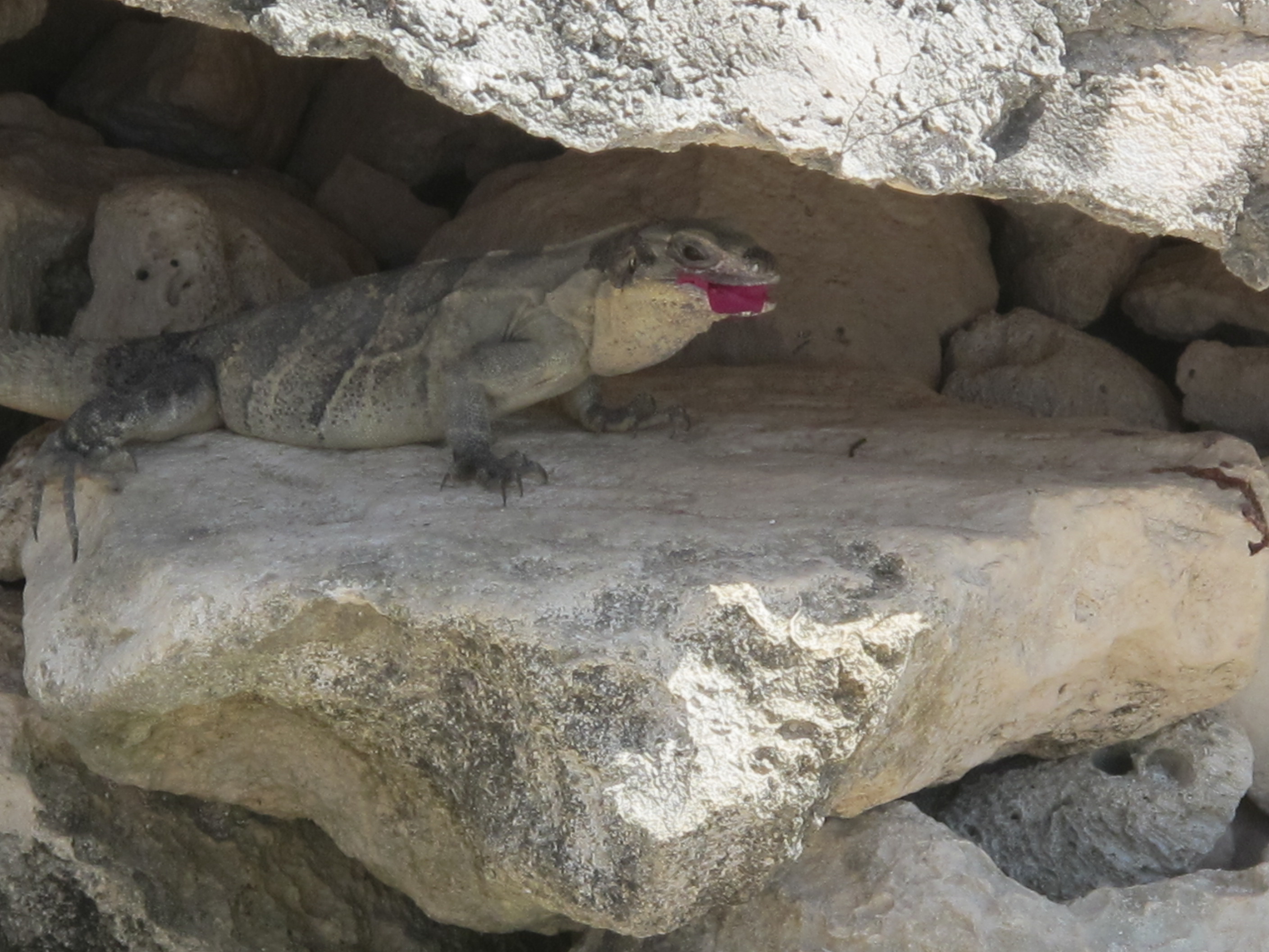Iguana eating a flower