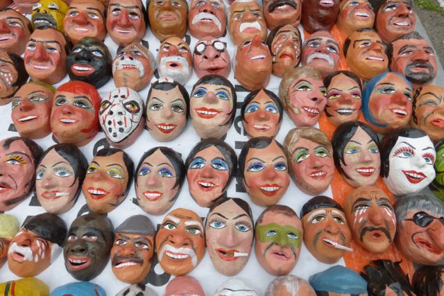 Paper Mache masks come in all types from old men to young girls and even aliens.