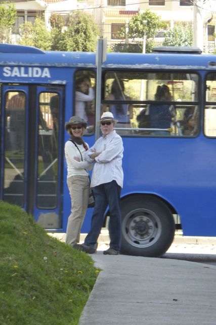 Our friends Carole Ann and Ron waiting for us at the bus stop.