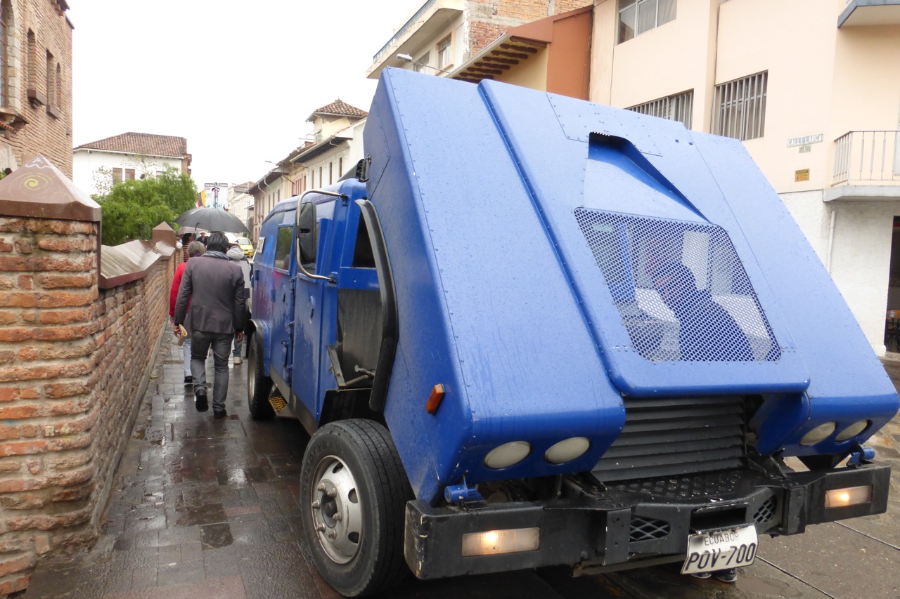 Not a good day for the armored car. As I walked by I saw guys with guns sitting at each window and one guy alone trying to fix the monster truck.