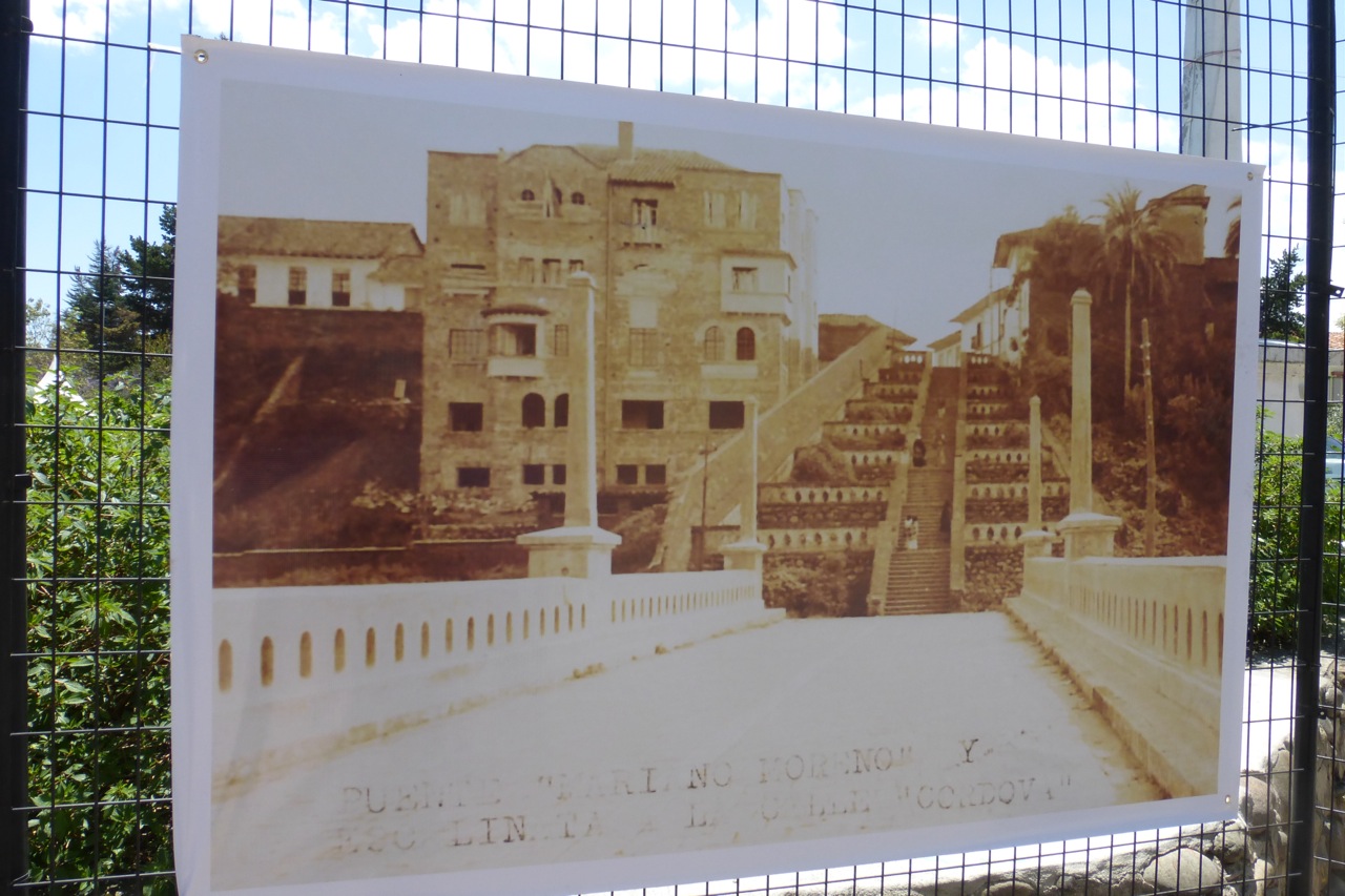 As part of the celebration, the city hung enlargements of archival images. This one is the Escalinata and the building we live in (which is called Casa de la Escalinata). The stairway now stretches all the way across instead of just down the middle. Our building was named the Best Building of the Year in 1945 so this photo must be about that time. Our apartment is the very bottom floor where you can see our kitchen, living room and bedroom windows.