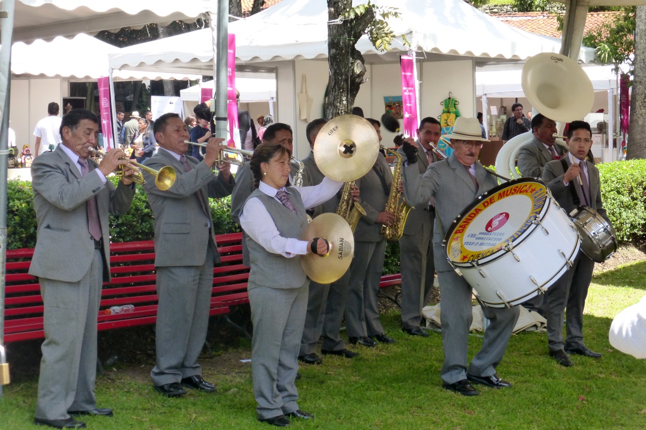 What a glorious day and energetic band to launch the Art Festival! Behind them are booths of juried artisans from all over South America.
