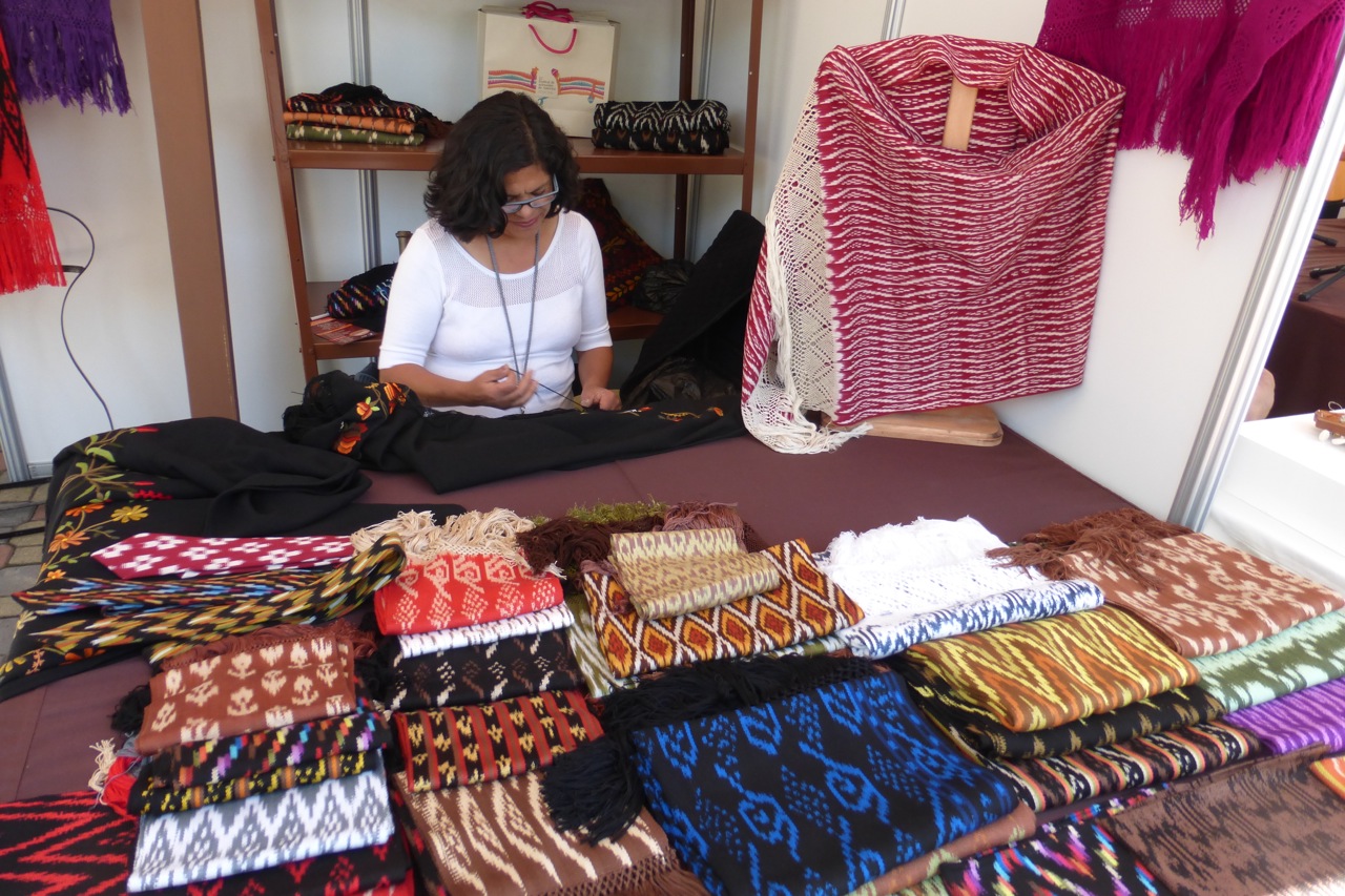 This Ecuadorean woman showed a wonderful array of traditional Ikat weavings. She also created her own patterns like the red and white one on the stand.
