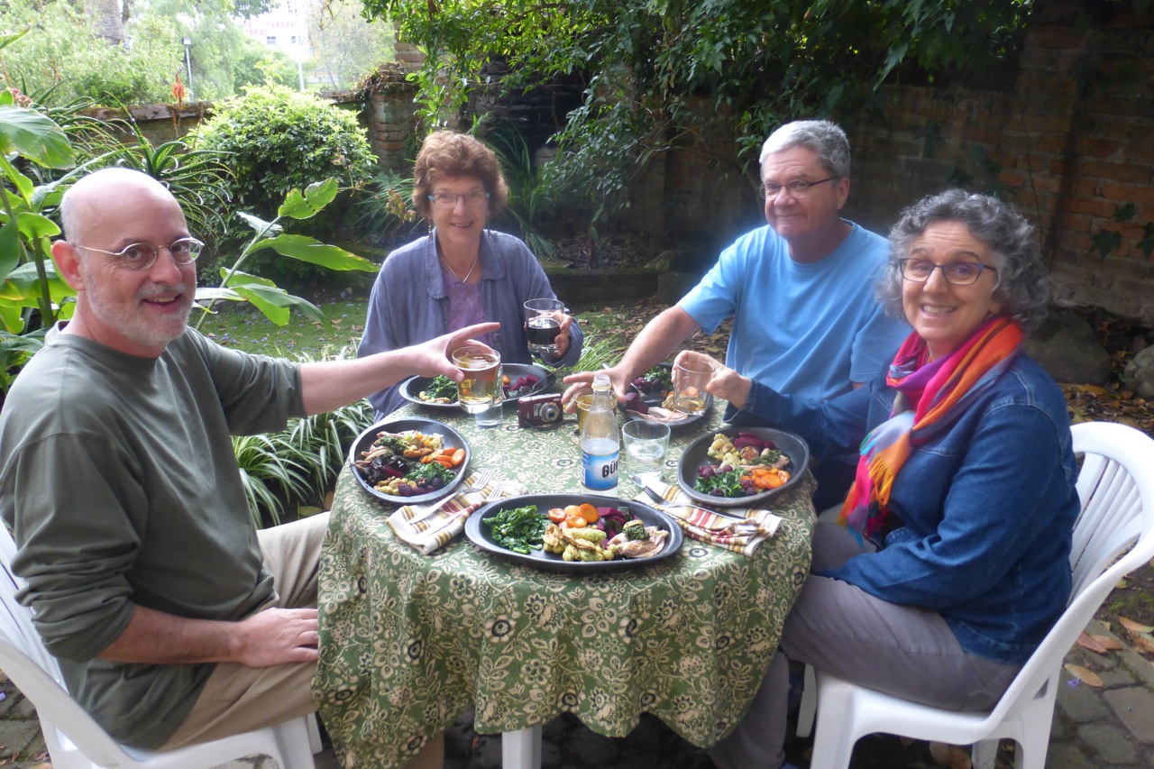 Dinner in our garden with friends Ginger, Gene and Tura.
