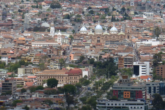 View of downtown and the famous domes as seen from Turi. The modern building in the lower right is Mt. Sinai hospital. All the people we have talked to rave about the quality of medical care here in Cuenca. I hope we don't have to find out for a long time.