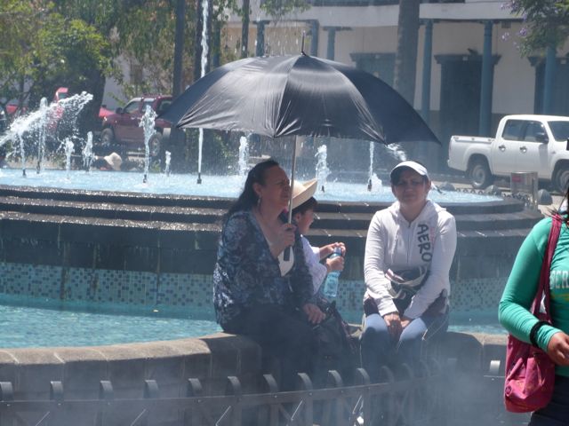 Umbrellas are used for both sun and rain at 8,000 ft. elevation.