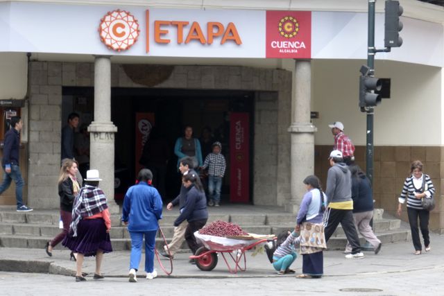 A cross section of Cuenca outside the ETAPA building where you pay for water and telephone service.