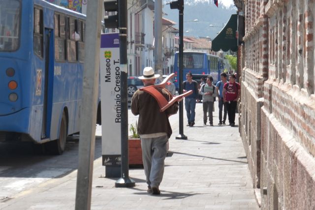 Winn is carrying a chair home for us to try out. The new place is small so every item has to serve duplicate purposes.