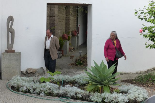 Modern sculpture and ancient terracotta jars at the museum.