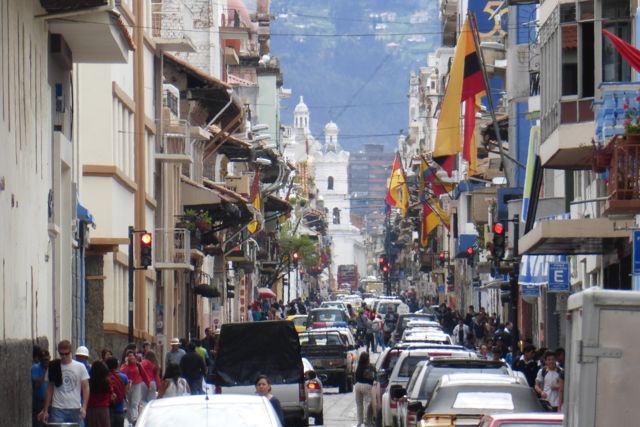 Looking down Simon Bolivar from San Blas Church on this end of town to St. Sebastian Church on the other end.