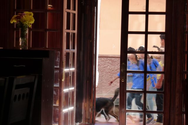 Looking out the door of the Terra restaurant toward the street. My camera does some weird things periodically. Maybe I could have it fixed but I kind of like the effects it comes up with.