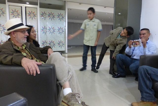 At the mall we ran into some young people who were on assignment to talk to foreigners and get their picture taken with them. The whole family got involved with Dad manning the tablet camera.