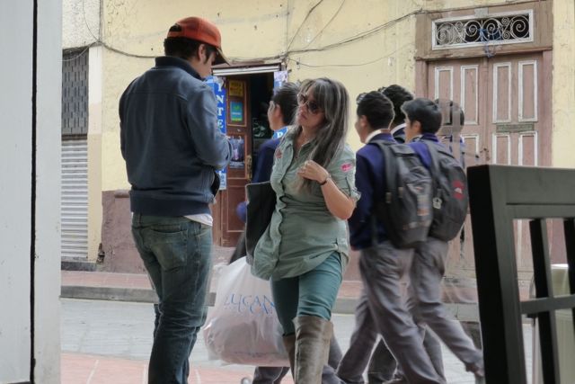 A man and woman talking with a special effect in the background courtesy of my camera.