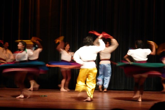 Spinning skirts and flying handkerchiefs in bright Latin colors.