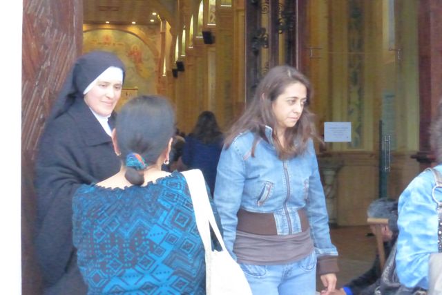 After the service, the crowd began emerging from the church....